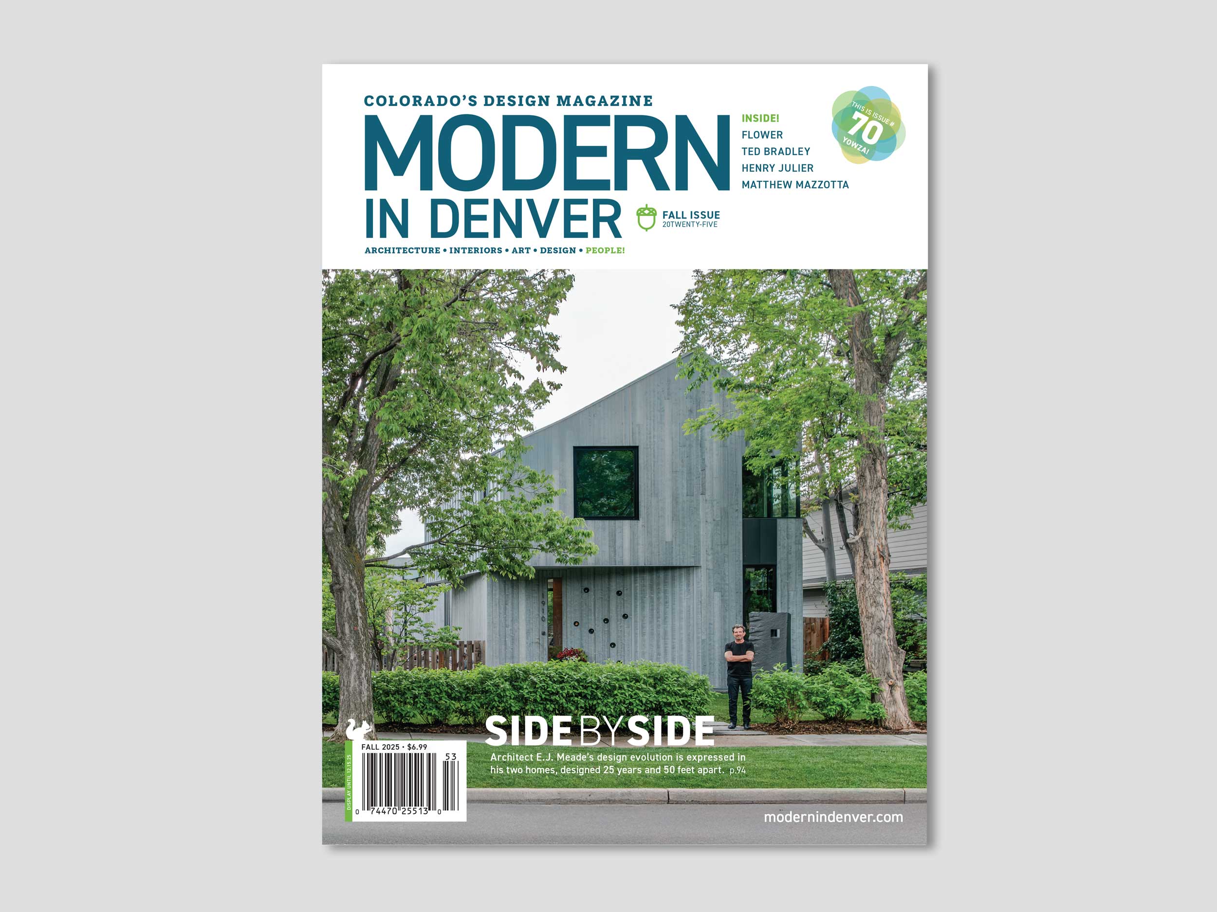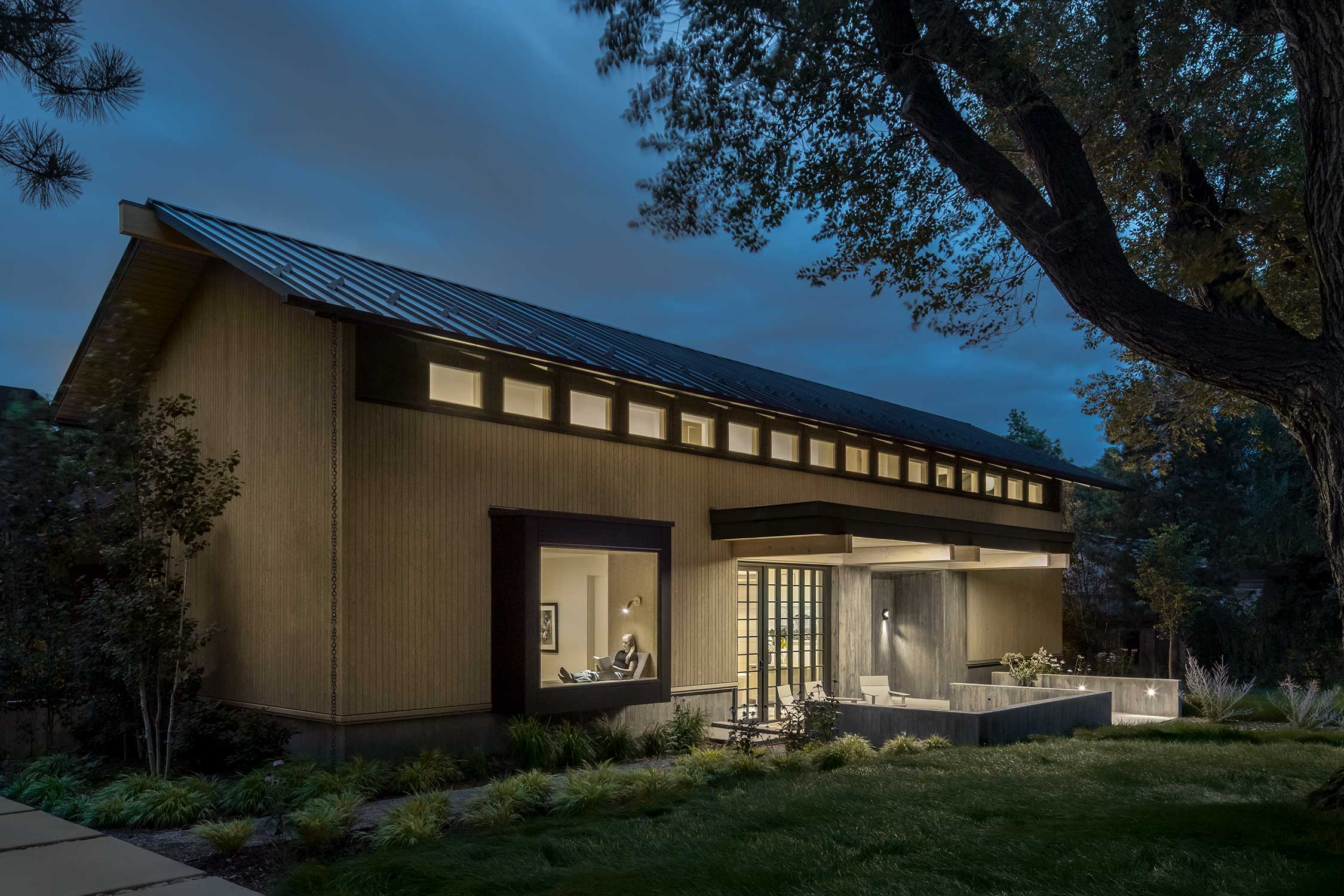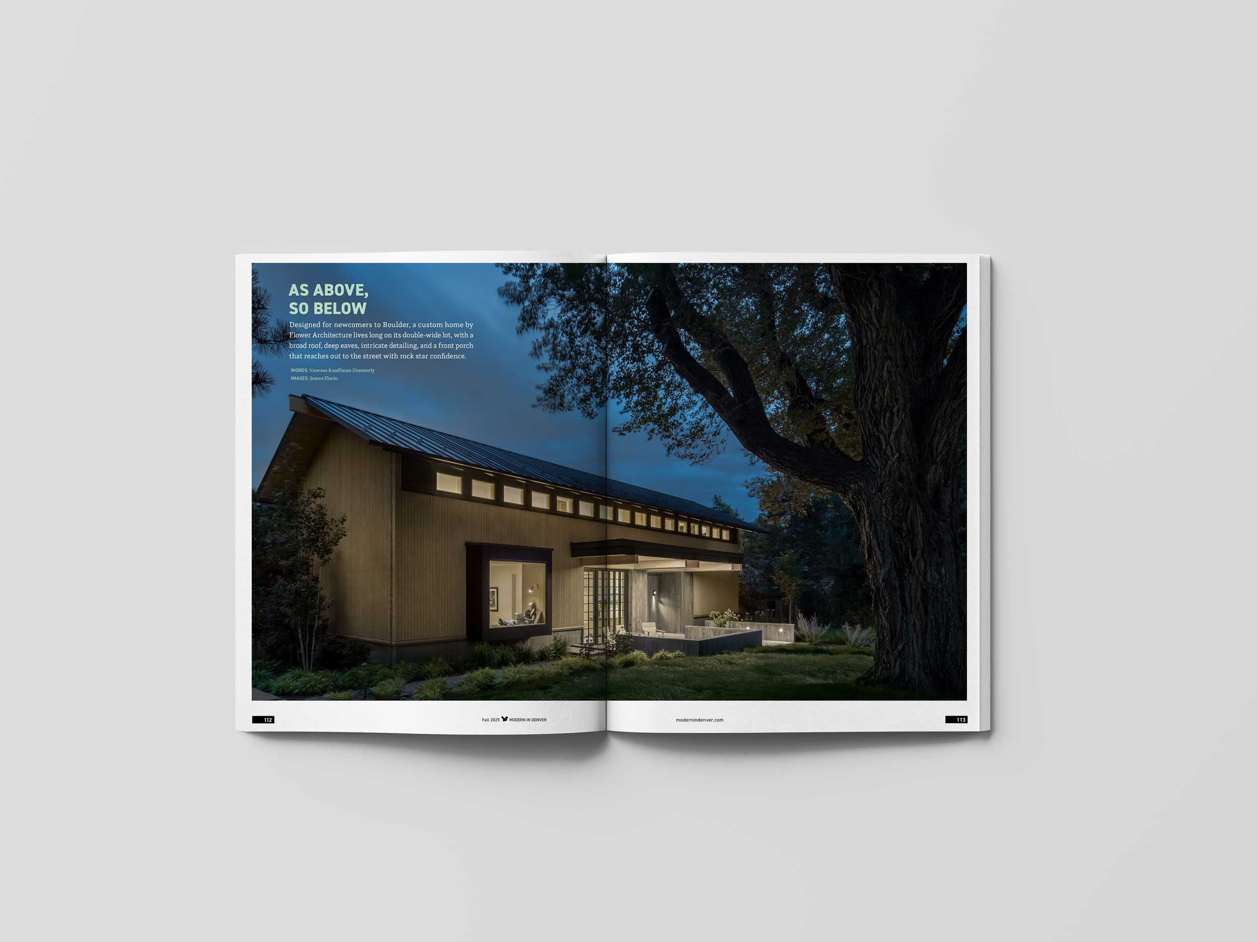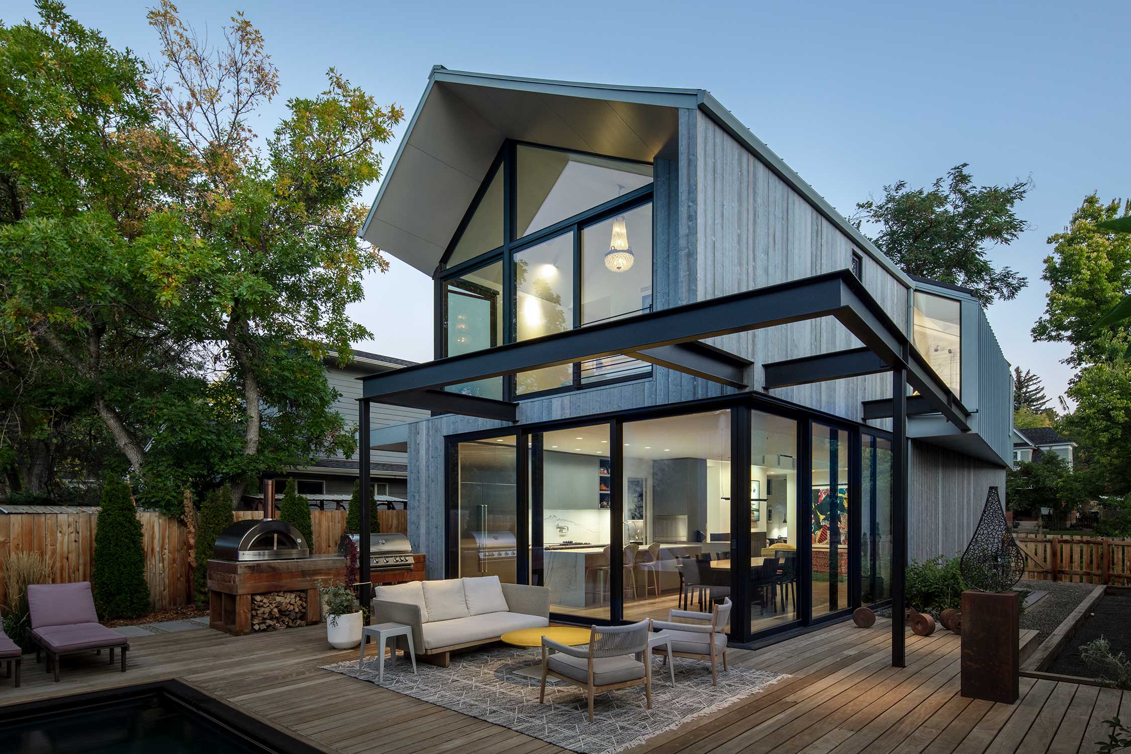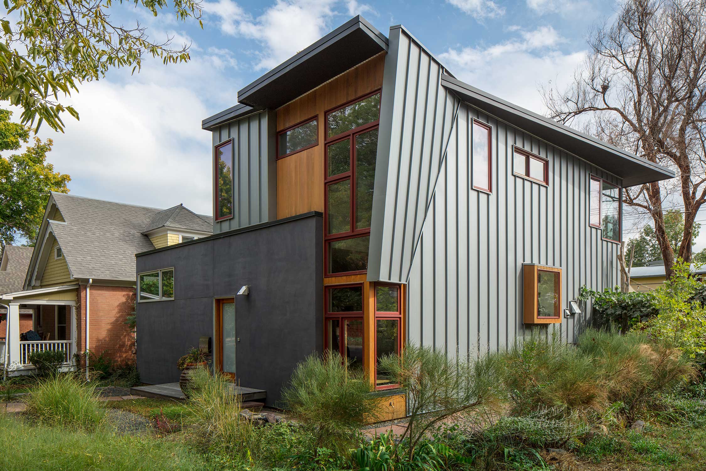 Designed for newcomers to Boulder, a custom home by Flower Architecture lives long on its double-wide lot, with a broad roof, deep eaves, intricate detailing, and a front porch that reaches out to the street with rock star confidence.
